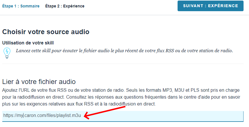 https://my.caron.com/files/playlist.m3u pour votre fichier avec votre playlist