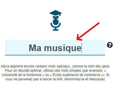 Donner le nom pour invoquer votre Skill.