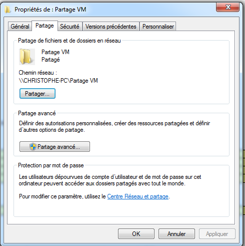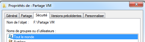 Puis Partager. Vérifier sur la sécurité que Tout le monde à un accès en lecture et écriture.