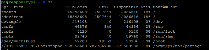 Dans mon cas, c’est /dev/root qui me permettra de faire ma sauvegarde.