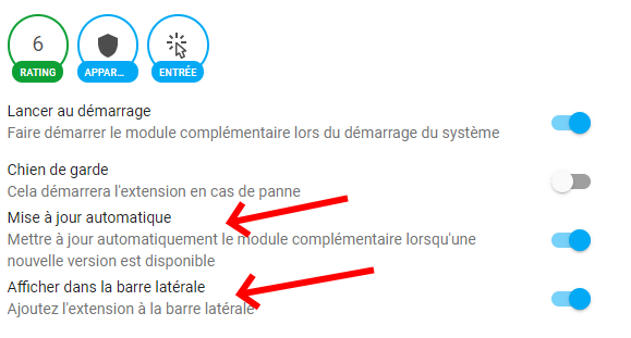 Choisir la mise à jour automatique et affichage dans la barre latérale.